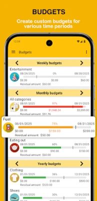 Fast Budgetin avulla saat tehokkaat työkalut käyttöösi. Kirjaa tulosi ja menosi nopeasti ja vaivattomasti, hyödyntäen esimerkiksi älykkäitä tapahtumapohjia ja käteviä widgettejä, jotka nopeuttavat tietojen syöttöä. Aikatauluta toistuvat maksut ja tulot ennakkoon muistutusten kera, jotta et koskaan unohda tärkeää eräpäivää. Seuraa pankkitilejäsi ja luottokorttejasi reaaliaikaisesti ja visualisoi varallisuutesi kehitystä selkeiden, mukautettavien kaavioiden avulla. Luo joustavia budjetteja kategorioittain, määritä niiden kesto ja seuraa, kuinka paljon sinulla on vielä käytettävissä kussakin kategoriassa. Fast Budget tekee rahojen hallinnasta läpinäkyvää ja ennakoitavaa.