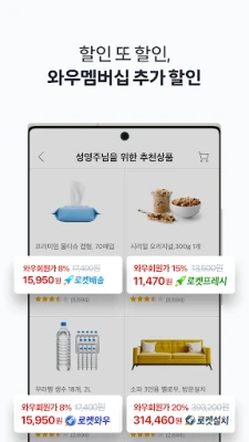 Koe ostamisen uusi ulottuvuus Coupang-sovelluksen avulla, joka muuttaa päivittäistavaroiden hankinnan ja erikoisostosten tekemisen vaivattomaksi nautinnoksi. Coupang mullistaa ostokokemuksesi salamannopealla toimituksella: tee tilaus keskiyöhön mennessä, ja tuotteesi saapuvat jo seuraavana päivänä, myös viikonloppuisin. Liity Rocket Wow -klubiin ja nauti jopa 100 % ilmaisesta toimituksesta Rakettitoimitus-tuotteille, samana päivän toimituksesta aamutilauksille, RakettiTuore-elintarvikkeiden varhaisaamun toimituksesta sekä 30 päivän ilmaisesta palautusoikeudesta, mikä tekee shoppailusta täysin riskitöntä.